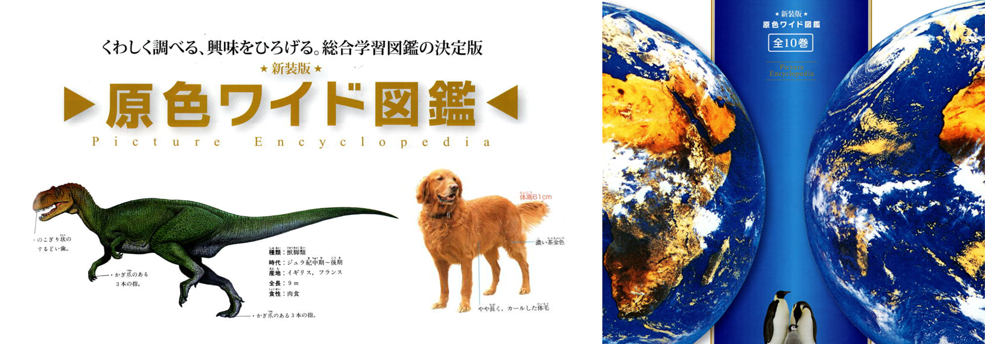 全ページフルカラーの図鑑セットです。「昆虫Ⅰ、Ⅱ、動物、恐竜、鳥、魚・貝、水の生物、人体、飼育Ⅰ、Ⅱ」